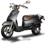 All of our new scoots come with a two-year-unlimited-miles parts and labor warranty. We have 11 different models to choose from ranging in size from 50cc to 300cc.
