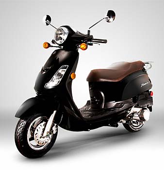 The modern, yet retro-inspired instrument panel provides clean and easy to read speedometer, odometer, turn signals and fuel indicator. Handling is solid and agile. She's easy to ride and flicks from side to side with the slightest thought and can handle the bumps and grind on the road. The Fiddle II is comfortable and upright, yet nice and low to the ground. The retro style chocolate-colored seat is broad and wide, and with a 30-inch low seat height. In regards to storage, she's got enough room to store your helmet, jacket, gloves and other trophies after an pleasant day of shopping. With an estimated fuel economy of 90 miles per gallon and with a fuel capacity of 1.32 gallons, the Fiddle II has extremely low fuel consumption, and is environmentally conscious. Help save the environment, while saving your wallet.