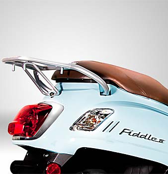 - The Fiddle II Top Case is a high quality rear trunk available in 7 matching colors. There's plenty of room to fit a full size helmet and other personal items and comes with a lock and key for security. An espresso color backrest pad matches the same color and material as the Cali espresso seat. A chrome rear rack with necessary hardware for easy installation is included. This is a must have accessory if you need additional storage for your Fiddle II scooter. Before you purchase, please ask about any specials or discounts on SYM accessories.
