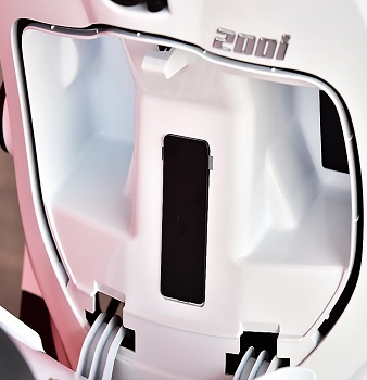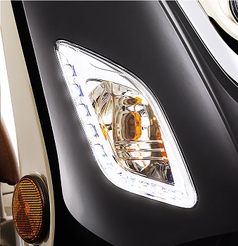 Braking is achieved through sport-tuned, 190 millimeter disc brakes up front and 220 mm disc with CBS-Combined Braking System in the rear. The brakes stop the scooter fast, with an extremely short braking distance. And the 12-inch wheels provide excellent control on any kind of road surface.