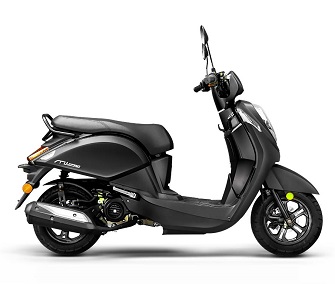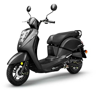 The engine is a 49.5cc air-cooled 4-stroke, with SYM proprietary ceramic-coated cylinder technology. Top speed is 30 miles an hour, 40 miles per hour de-restricted. Acceleration is smooth and continuous, with a steady flow of power. The 160 millimeter front disc brakes and 95 millimeter rear drum brakes brings this light and nimble 176 pound scooter to a stop. The modern, retro-inspired design instrument panel provides clean and easy to read speedometer, odometer, turn signals and fuel indicator. Handling is nimble and ride quality is great for a scooter of this size. Cruising around town transforms boring chores into a virtual rollercoaster with a purpose. The Mio is comfortable and upright, yet nice and low to the ground. The retro-style chocolate colored seat is broad and wide with a 29.9 inch seat height. Underneath the cushy seat is a large compartment that can accommodate a full face helmet and even a few groceries. With an estimated fuel economy of 100 miles per gallon and a fuel capacity of 1.2 gallons, the Mio 50 has extremely low fuel consumption and is environmentally conscious.